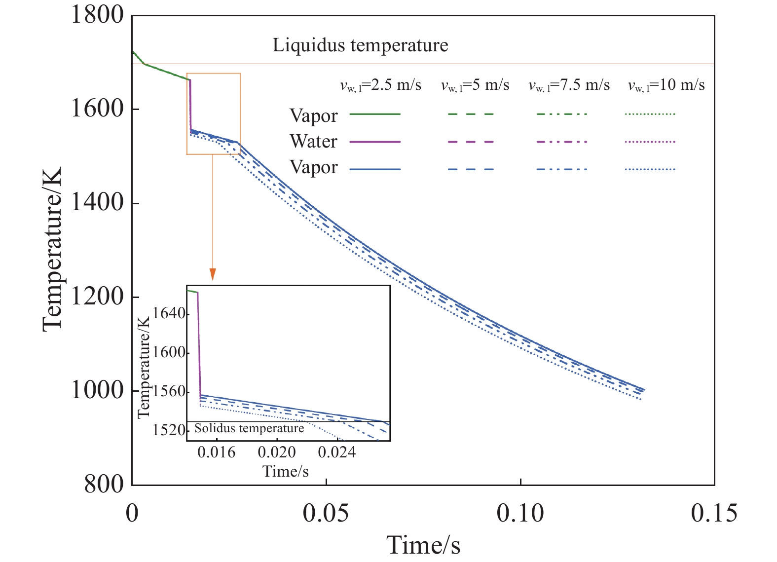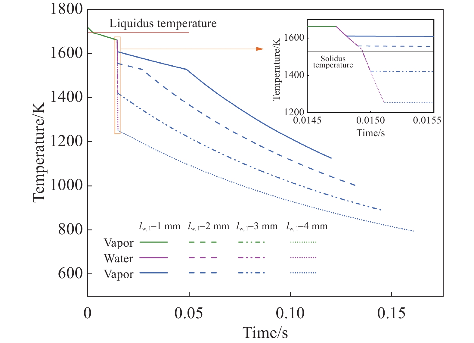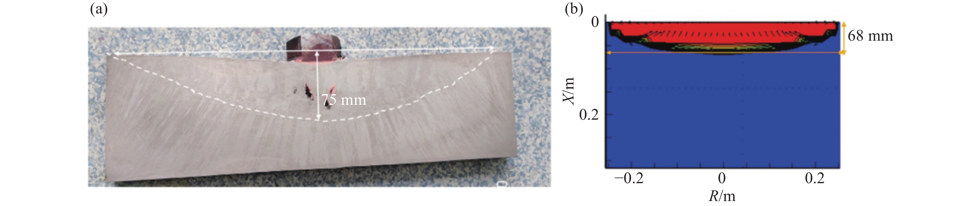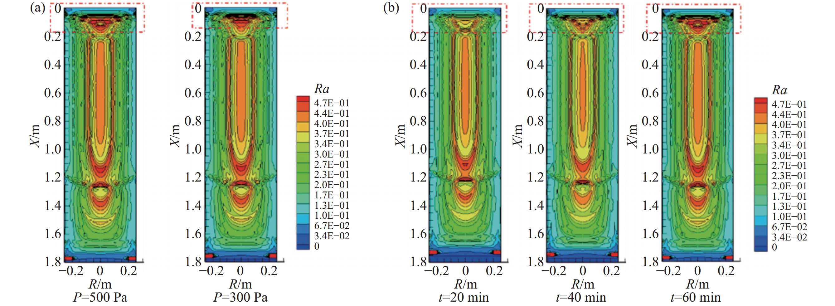 In this paper, the numerical simulation on vacuum arc remelting process of nickel base superalloy with respect to electromagnetic distribution, flow and heat transfer behavior of molten pool, as well as the morphology and size at different stages of the vacuum arc remelting process had been carried out by using a Meltflow-VAR software. Moreover, the formation tendency and reasons for the freckle defects throughout the smelting process had been investigated. At the same time, the influence of helium pressure on the flow and heat transfer behavior of molten pool, the morphology and size of molten pool, and the freckle formation was studied. The results show that the potential is mainly located in the center of the surface of the ingot, while the magnetic induction intensity is mainly located at the edge of the surface of the ingot, as well as the flow of the molten pool is mainly driven by thermal buoyancy. In addition, the electric field strength, current density, Lorentz force as well as the size and flow intensity of the molten pool that distributed on the surface and inside of the ingot, gradually increase at the ignition process of vacuum arc, and remain stable during the steady-state stage, then gradually decrease during the hot tap stage. During the entire smelting process, the freckle defect easily forms near the top of the hot seal on the upper part of the ingot because the cooling effect of the bottom plate of the crystallizer is weak, the helium pressure at the top of the hot seal decreases and the holding time at low melting rates is long as the ingot grows in the longitudinal direction. Increasing helium pressure can reduce the size of the molten pool and alleviate ingot segregation, but the effect of improving ingot segregation defects will gradually become less significant as continuously increasing helium pressure. Finally, the comparison of molten pool depth observed by experimental dissection and simulation is conducted, which verifies the rationality of the established mathematical model.